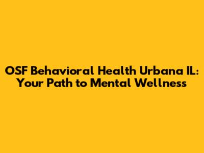 OSF Behavioral Health Urbana IL: Your Guide To Wellness