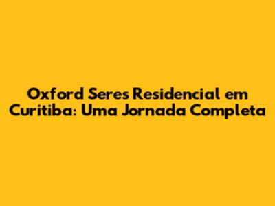 Oxford Seres Residencial Em Curitiba: Guia Completo