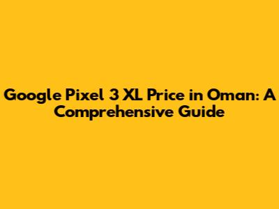 Pixel 3 XL Price In Oman: A Comprehensive Guide