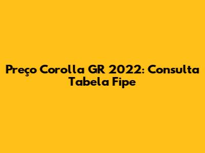 Preço Corolla GR 2022: Consulta Tabela Fipe