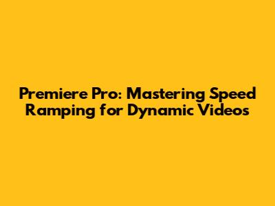 Premiere Pro: Mastering Speed Ramping For Dynamic Videos