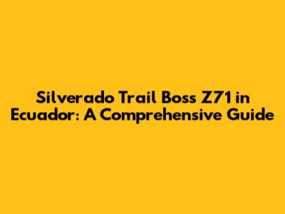 Silverado Trail Boss Z71 In Ecuador: A Comprehensive Guide
