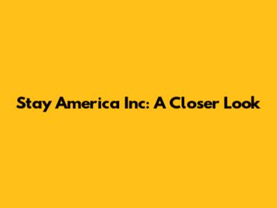 Stay America Inc: A Closer Look