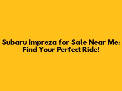Subaru Impreza For Sale Near Me: Find Your Perfect Ride!