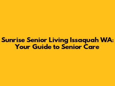 Sunrise Senior Living Issaquah WA: A Comprehensive Guide