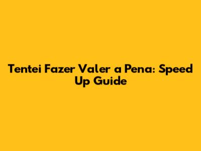 Tentei Fazer Valer A Pena: Speed Up Guide