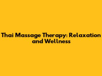 Thai Massage Therapy: Relaxation And Wellness