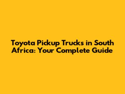 Toyota Pickup Trucks In South Africa: A Comprehensive Guide