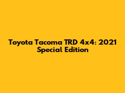 Hey guys, let's dive into the awesome 2021 Special Edition Toyota Tacoma TRD 4x4! If you're in the market for a rugged, reliable, and seriously capable off-road truck, you've come to the right place. Toyota Tacomas have a legendary reputation for their durability and off-pavement prowess, and this 2021 special edition cranks that up a notch. We're talking about a truck that's built to handle whatever you throw at it, whether you're hitting the trails, hauling gear, or just cruising around town.