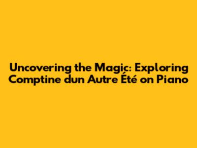 Uncovering The Magic: Exploring 'Comptine D'un Autre Été' On Piano