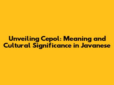 Unveiling Cepol: Meaning And Cultural Significance In Javanese