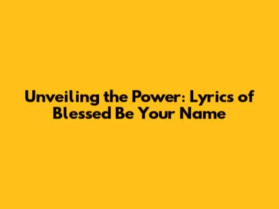 Unveiling The Power: Lyrics Of 'Blessed Be Your Name'