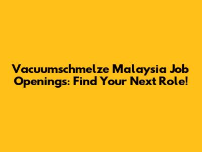 Vacuumschmelze Malaysia Job Openings: Find Your Next Role!