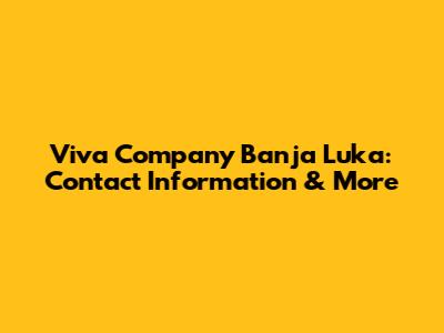 Viva Company Banja Luka: Contact Information & More