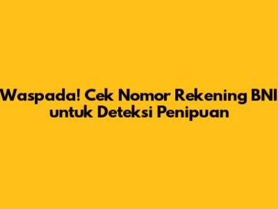 Waspada! Cek Nomor Rekening BNI Untuk Deteksi Penipuan