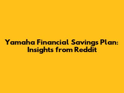 Yamaha Financial Savings Plan: Insights From Reddit